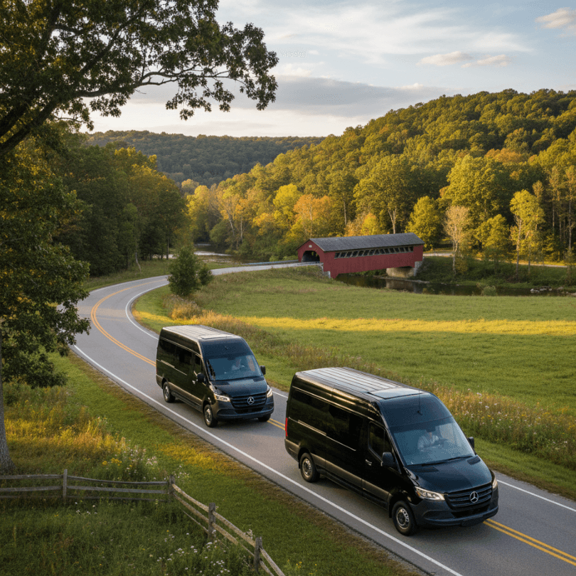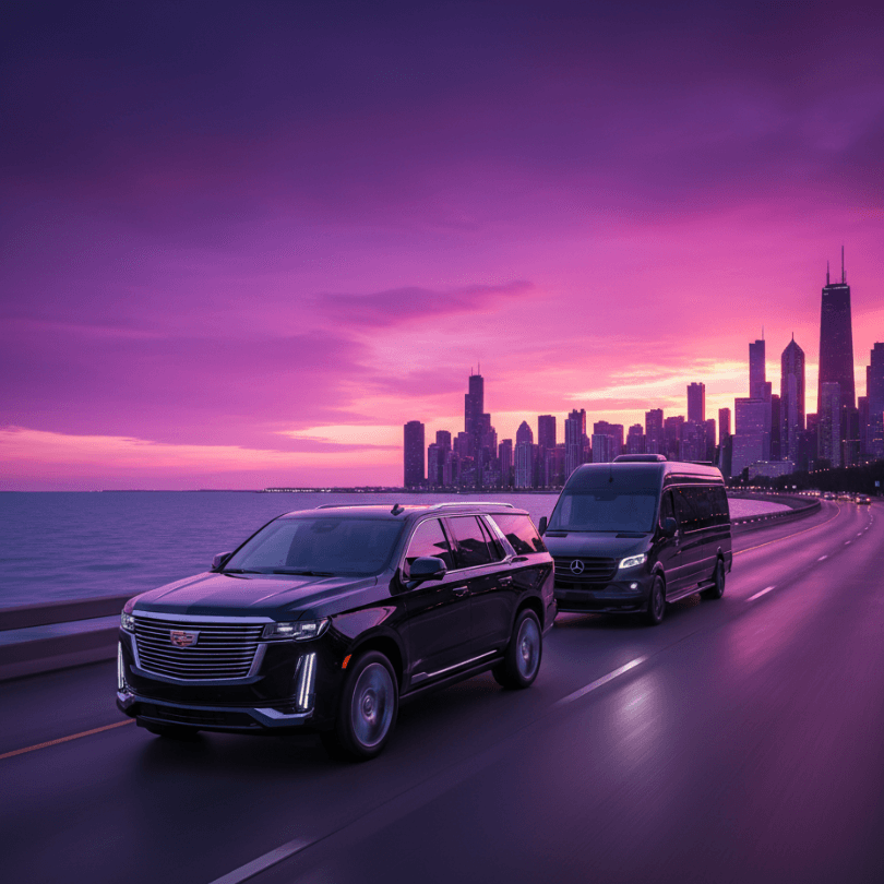Fleet of Sprinter limousines, Cadillac SUVs, and black cars