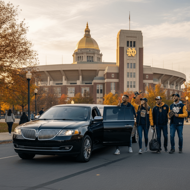 Travel from Illinois to Notre Dame football and sporting events in complete luxury and comfort with Royal Limo Services.